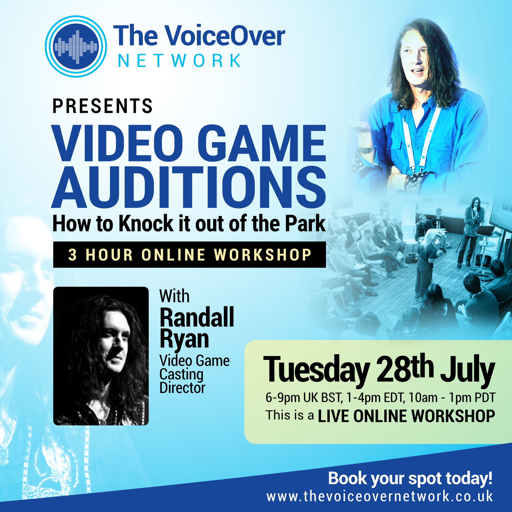 Video Game Auditions - How to Knock it out of the Park online workshop with Randall Ryan Tuesday 28th July 2020